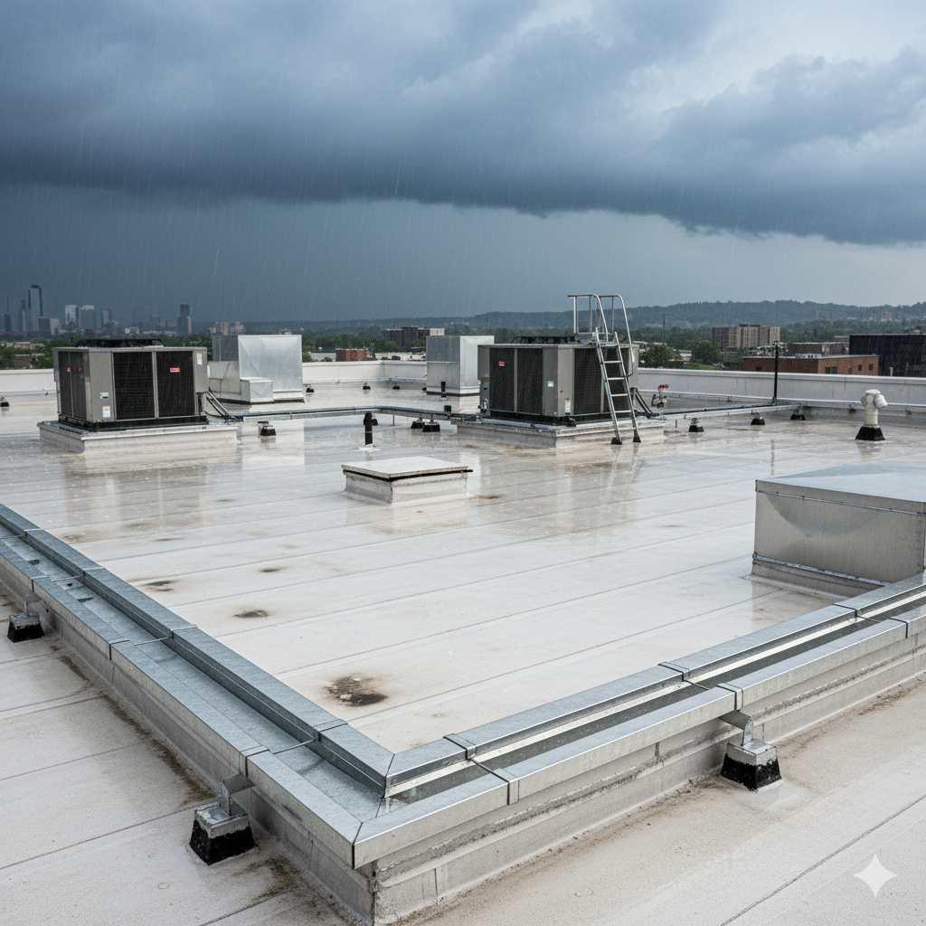 Storms, wind, and UV exposure damage roofs and accelerate building envelope failures.
